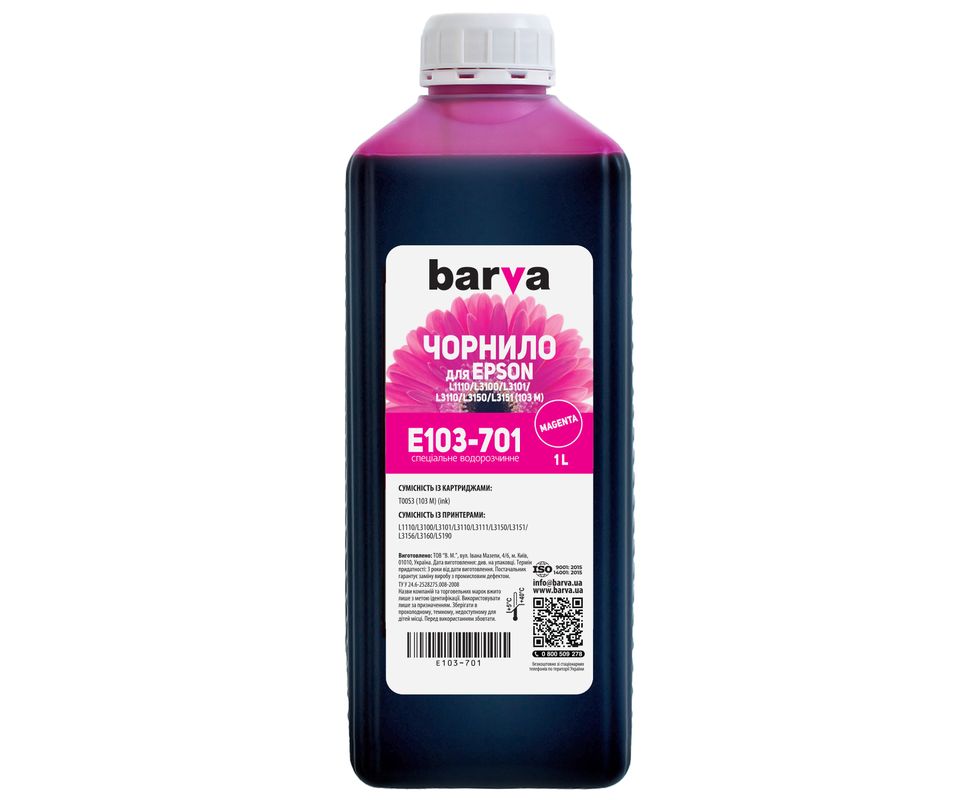 Чорнило Epson 103 M (L1110/L3100) 1 л пурпурове Barva (E103-701) опис