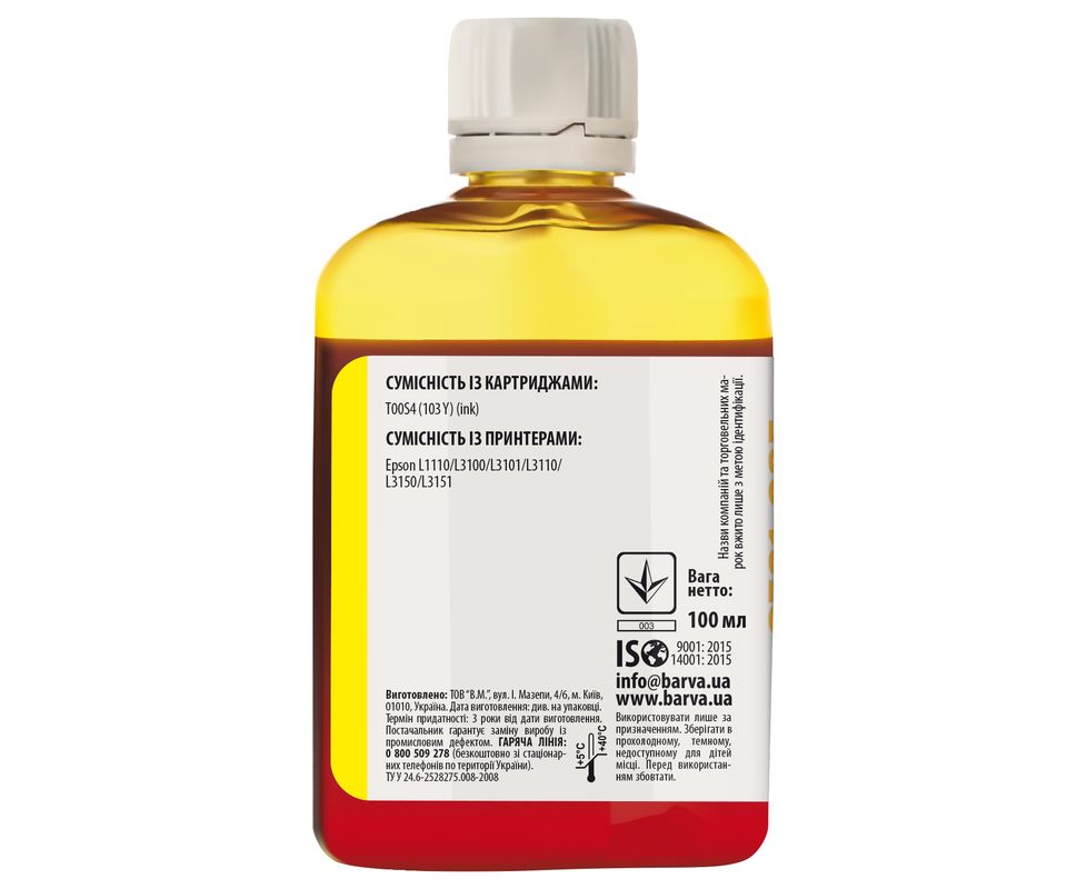 Чернила Epson 103 Y специальные 100 мл, водорастворимые, желтые Barva (E103-693)
