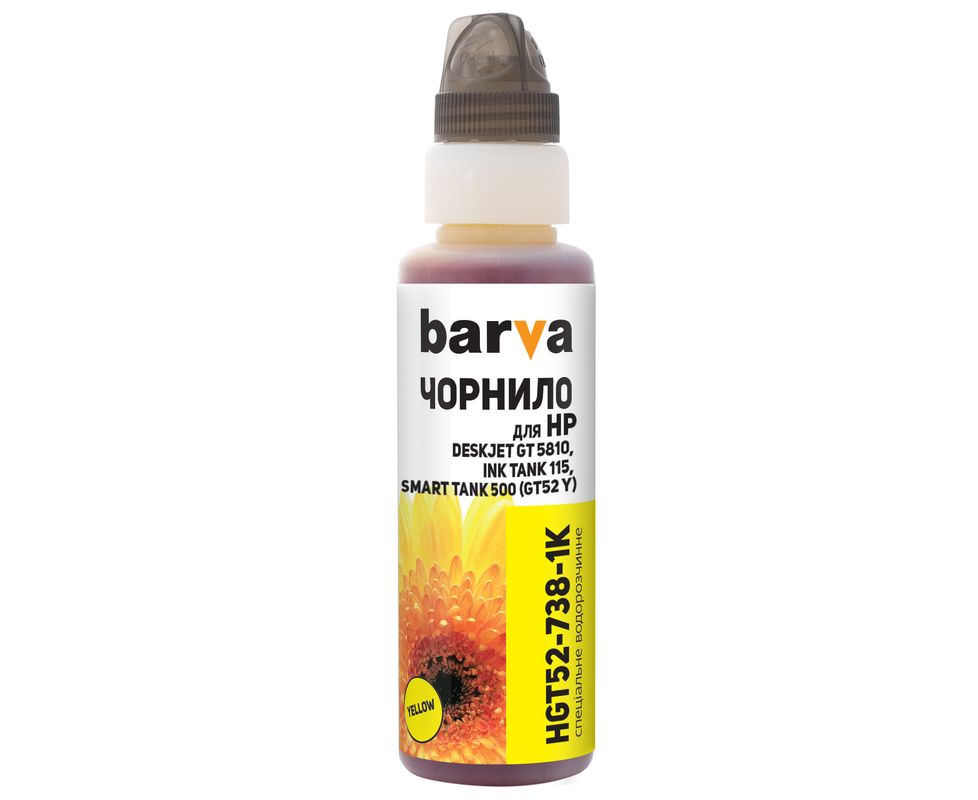 Чернила HP GT52 Y специальные 100 мл, флакон OneKey (1K), водорастворимые, желтые Barva (HGT52-738-1K)