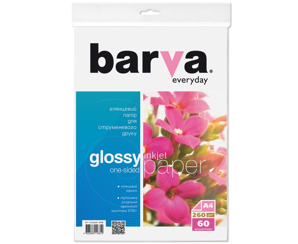 Фотобумага глянцевая 260 г/м2, A4, 60 л Everyday Barva (IP-CE260-298)