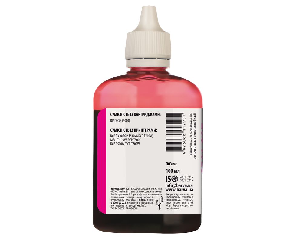 Чернила Brother BT5000M специальные 100 мл, водорастворимые, пурпурные Barva (BBT5000M-745)
