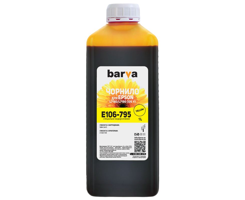 Чернила Epson 106 Y специальные 1 л, водорастворимые, желтые Barva (E106-795)