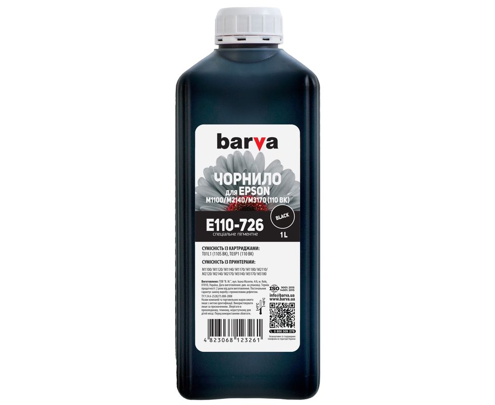 Чернила Epson 110 BK специальные 1 л, пигментные, черные Barva (E110-726)