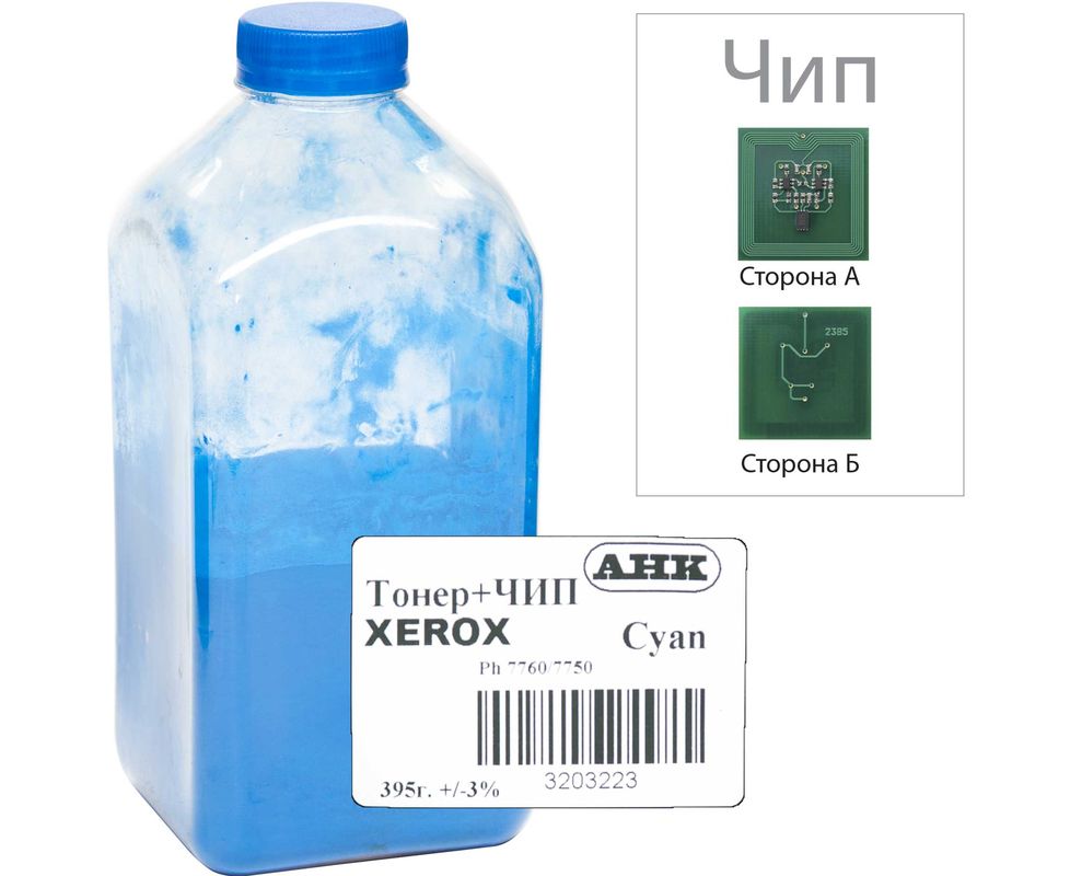 Тонер+девелопер+чип АНК для Xerox Phaser 7750/7760 бутль 395г Cyan (3203223)