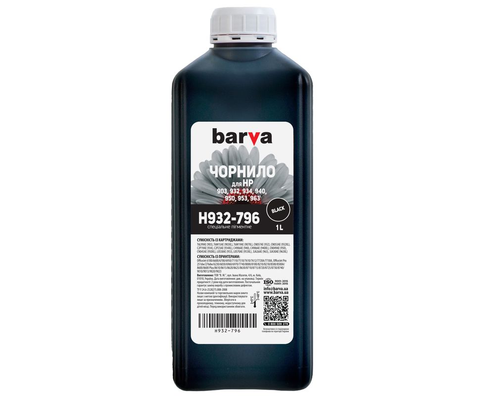 Чернила HP 932 специальные 1 л, пигментные, черные Barva (H932-796)