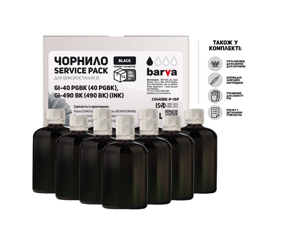 Чернила Canon GI-40 PGBK/GI-490 BK специальные 10x100 мл, пигментные, черные Service Pack Barva (CGI40Bk-P-1SP)