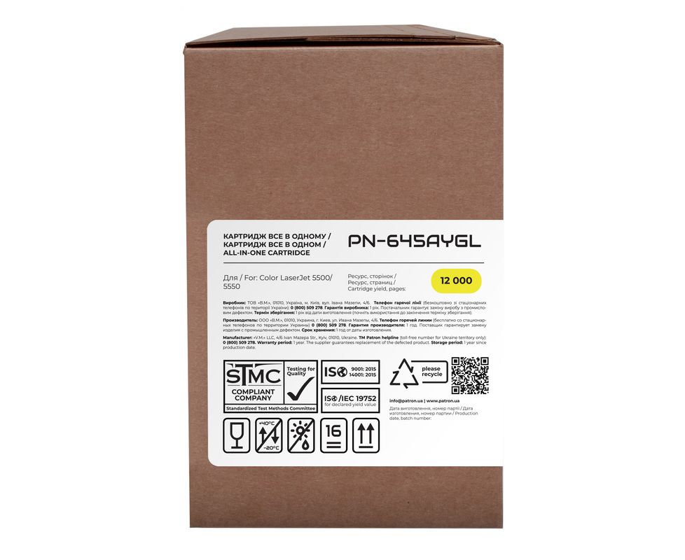 Картридж совместимый HP 645A (C9732A) желтый Green Label Patron (PN-645AYGL)
