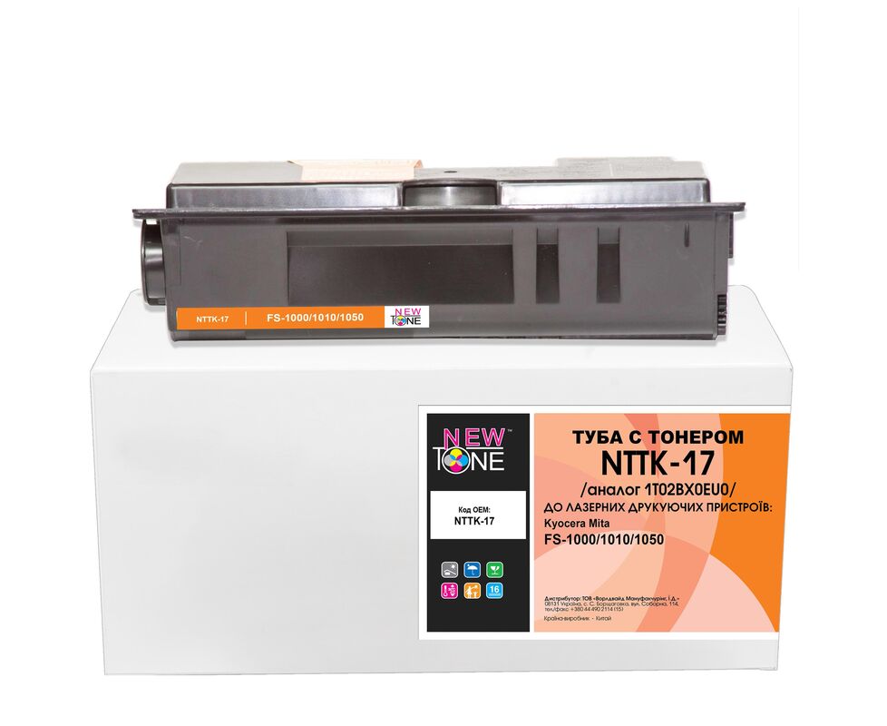 Совместимая тонерная туба NewTone - аналог оригинальной тубы Kyocera Mita TK-17. Дистрибьютор картриджей NewTone - это крупнейшая украинская компания Worldwide Manufacturing, E.D., которая с 1993 года является лидером рынка расходных материалов в Украине и поставляет продукцию от мировых производителей стабильно Высокого качества для широкого спектра печатающих устройств. Бизнес процесы компании соответствуют международным стандартам ISO 9001:2008, ISO 14001:2004, ISO 14024:2002 - это гарантирует стабильное качество продукции. Картриджи NewTone - это экономически выгодное предложение, которое в большинстве случаев конкурирует с качественной заправкой/восстановлением обычного картриджа, но позволяет за те же деньги получить абсолютно новый картридж отличного качества. Основные качественные показатели картриджа (Оптическая плотность, Фон, Адгезия), могут незначительно уступать параметрам оригинальных картриджей - это не влияет на качество отпечатка и, в большинстве случаев, определяется только специальным измерительным оборудованием в процессе лабораторных испытаний. Ресурс картриджей NewTone соответствует ресурсу оригинальных картриджей. Туба NewTone NTTK-17 предназначена для использования в следующих печатающих устройствах: Kyocera Mita FS: FS-1000, FS-1010, FS-1050, FS-2010