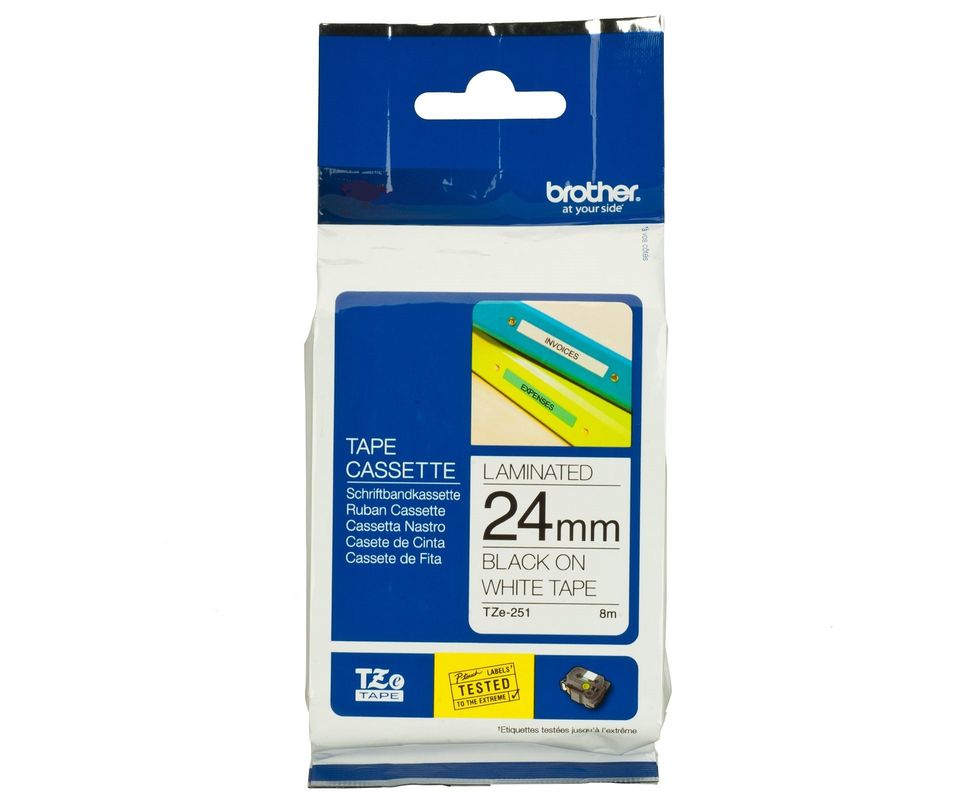 Термо-лента Brother 24mm ламинированная, черный на белом (TZE251) - совместимость