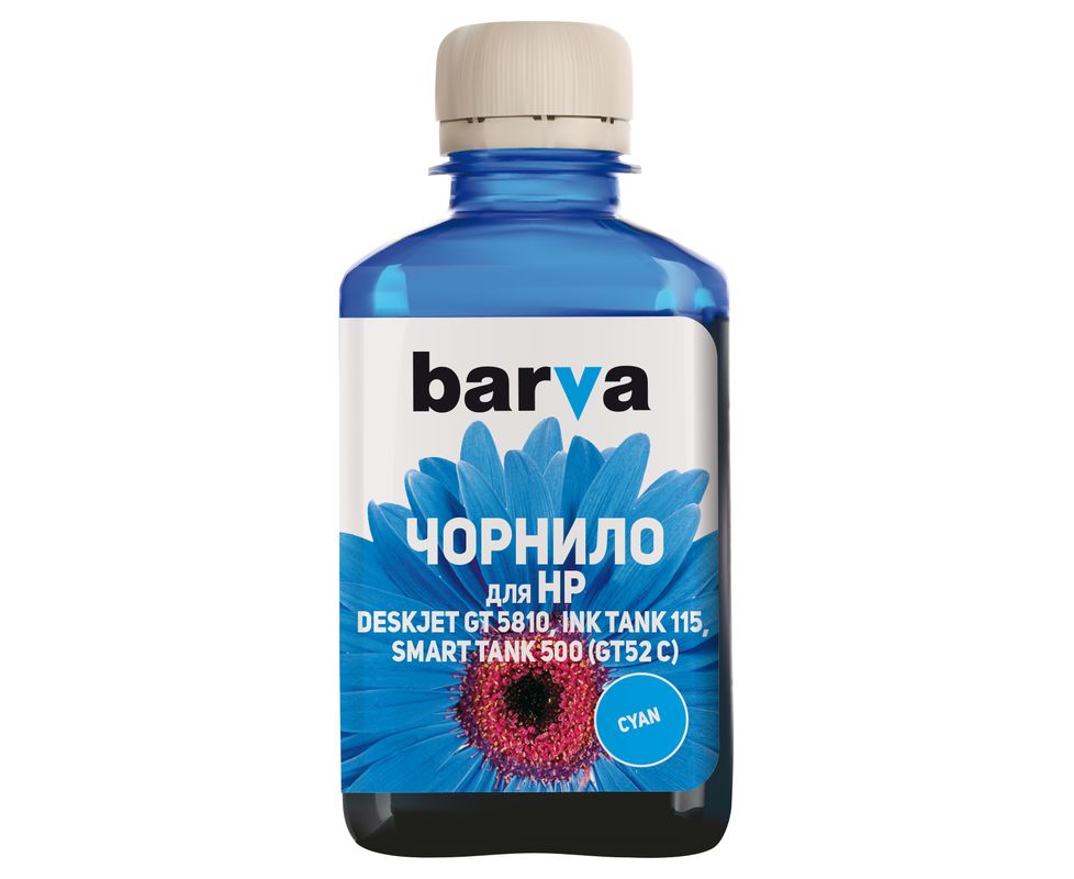 Чернила HP GT52 C специальные 180 мл, водорастворимые, голубые Barva (HGT52-740)