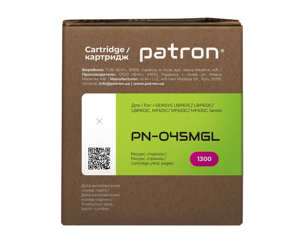 Особливості КАРТРИДЖ CANON 045 (PN-045MGL) MAGENTA PATRON GREEN Label