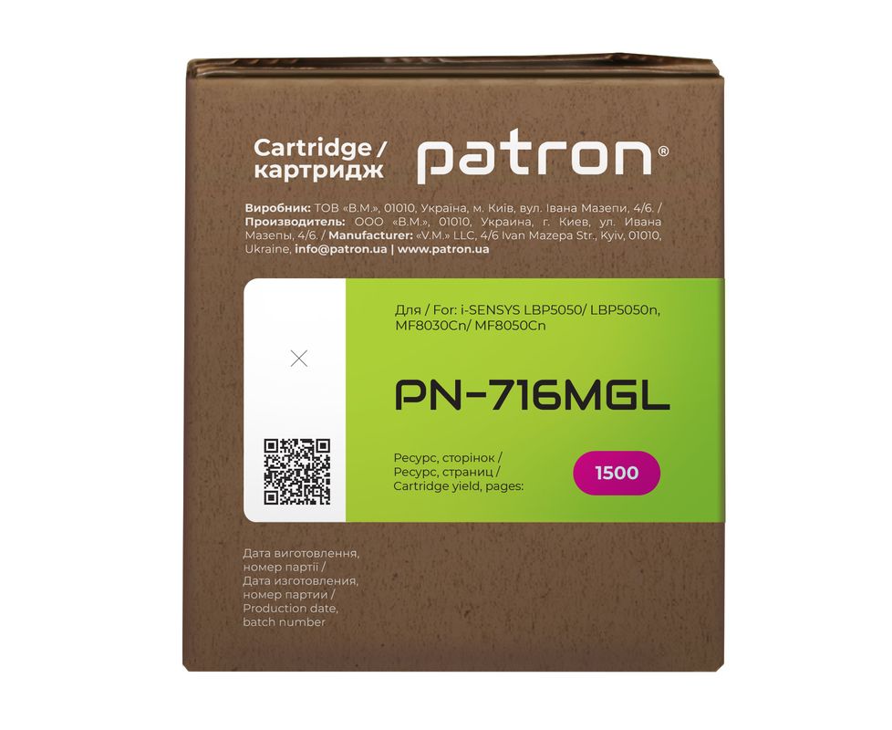 Картридж совместимый Canon 716 Green Label, пурпурный Patron (PN-716MGL)