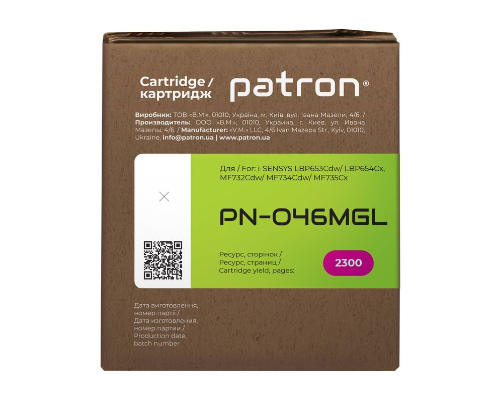 Картридж совместимый Canon 046 Green Label, пурпурный Patron (PN-046MGL)
