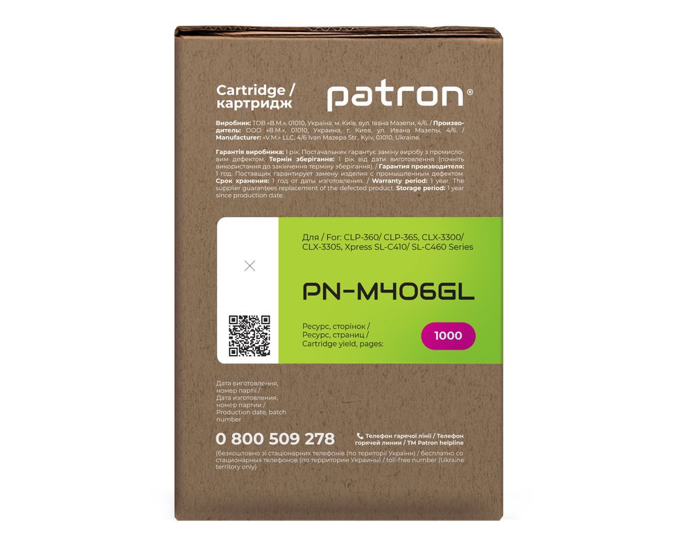 Тонер-картридж совместимый Samsung CLT-M406S Green Label, пурпурный Patron (PN-M406GL)