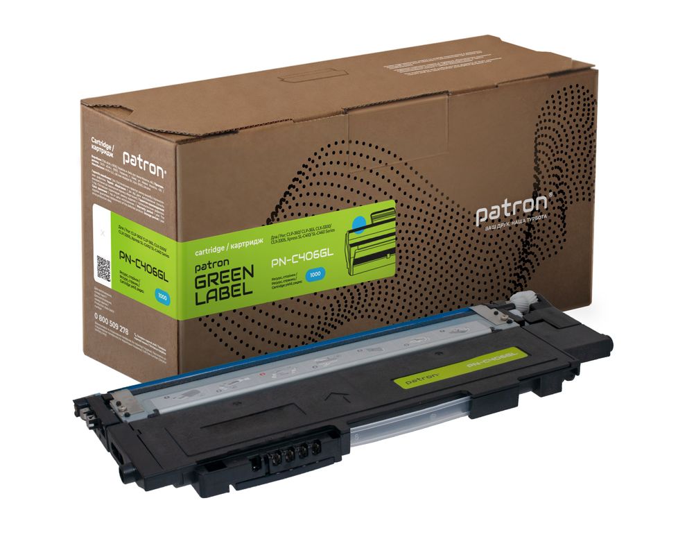 Тонер-картридж совместимый Samsung CLT-C406S Green Label, голубой Patron (PN-C406GL)