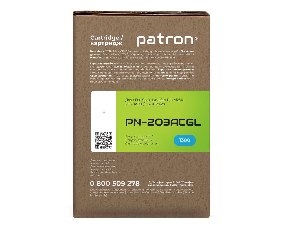 Картридж совместимый HP 203A (CF541A) голубой Green Label Patron (PN-203ACGL)