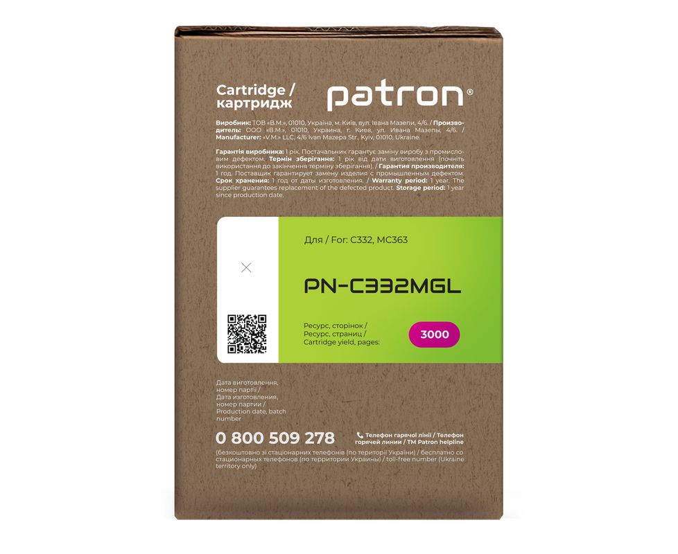 Тонер-картридж совместимый Oki 46508734 Green Label, пурпурный Patron (PN-C332MGL)