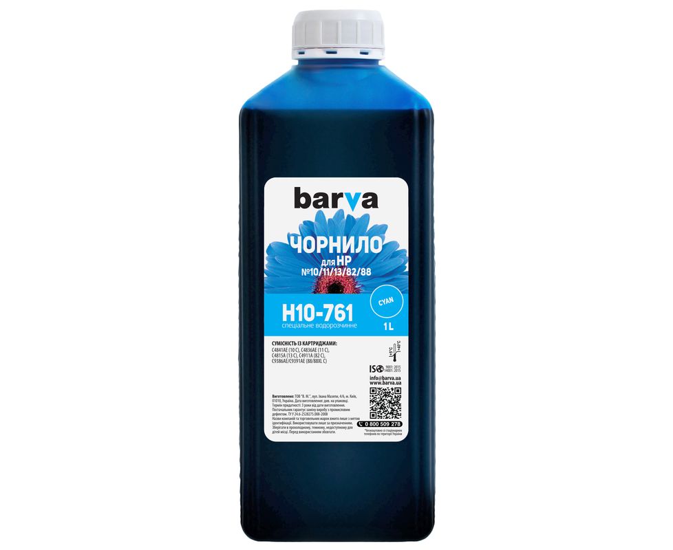 Чернила HP 10/11/13/82/88 специальные 1 л, водорастворимые, голубые Barva (H10-761)