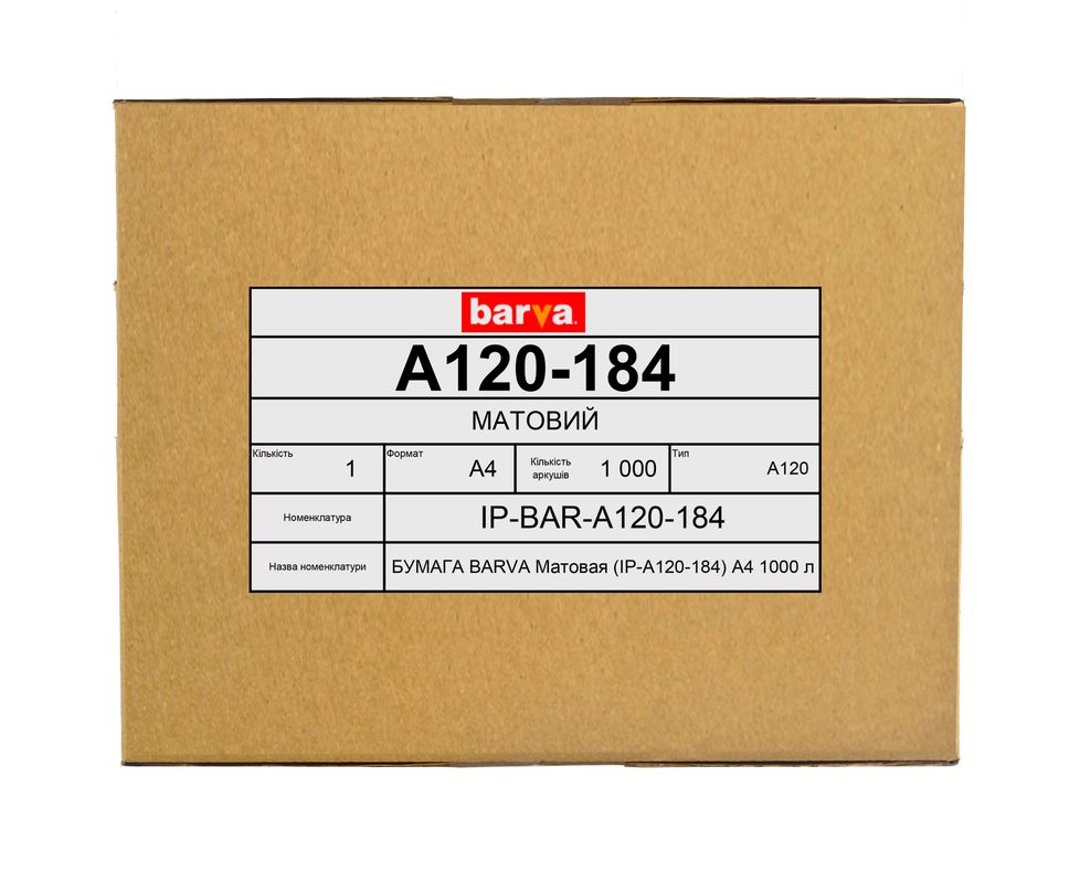 Бумага матовая 120 г/м2, А4, 1000 л, bulk Original Barva (IP-A120-184)